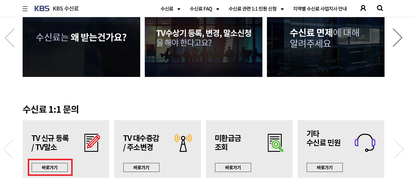 TV를 사용하지 않거나 수신료 납부 대상에 포함되지 않는 분들은 아래의 절차를 통해 수신료 해지를 신청할 수 있습니다.